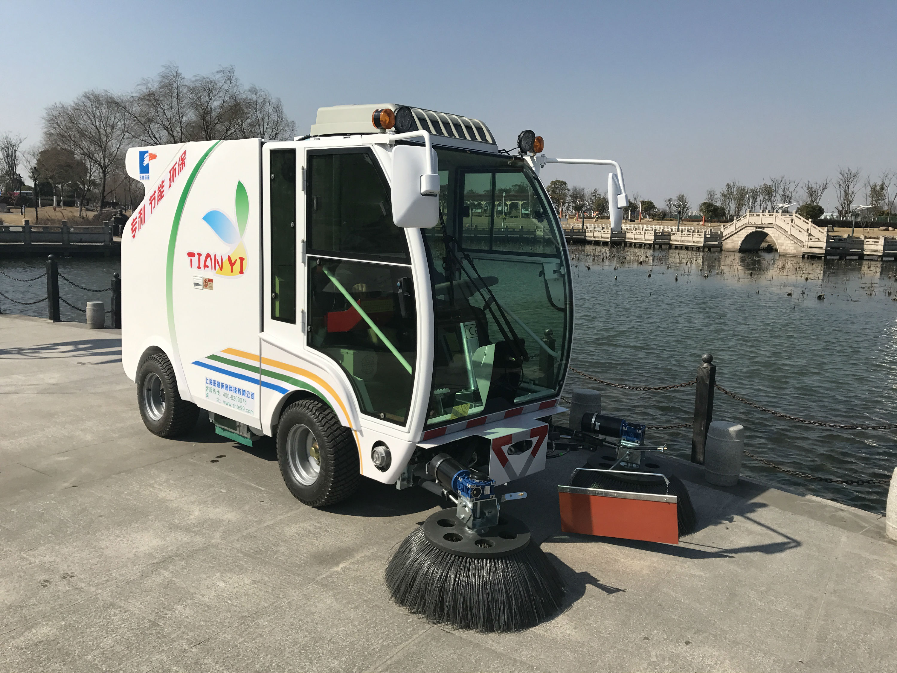 TY16DDTS清掃機(jī)(后桶式)是上海田意環(huán)??萍加邢薰狙邪l(fā)的一款后桶式的全鋁合金駕駛室動力電池清掃機(jī),該清掃機(jī)的全部動力,均來自于自身裝配的